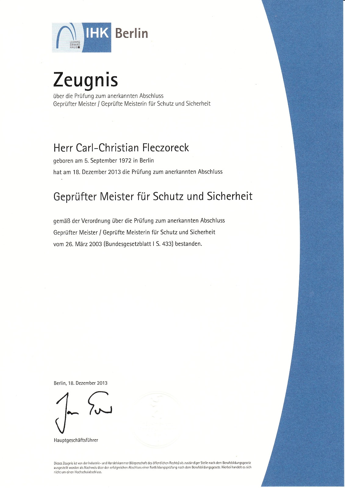 Carl Fleczoreck übernimmt die Aufgaben des operativen Einsatzleiters. Als Meister für Schutz und Sicherheit mit einer 25 Jährigen Berufserfahrung verfügt er über ein exzellentes Fachwissen, eine akribische Arbeitsweise und ein hohes Maß an sozialer Kompetenz. Zu seinen Aufgaben gehören die Koordination des Einsatzpersonals vor Ort, die Erstellung von maßgeschneiderten Sicherheitskonzepten sowie die Abstimmung aller sicherheitsrelevanten Maßnahmen mit den Kunden. Vertrauen und Kundennähe bilden die Basis seiner Zusammenarbeit. Als Ausbilder und Dozent ist er für die Erstellung von praxisorientierten Schulungsinhalten und die Qualifizierung unseres Sicherheitspersonals verantwortlich. Dabei orientiert er sich an den ständig steigenden Ansprüchen an ein modernes Sicherheitsunternehmen.